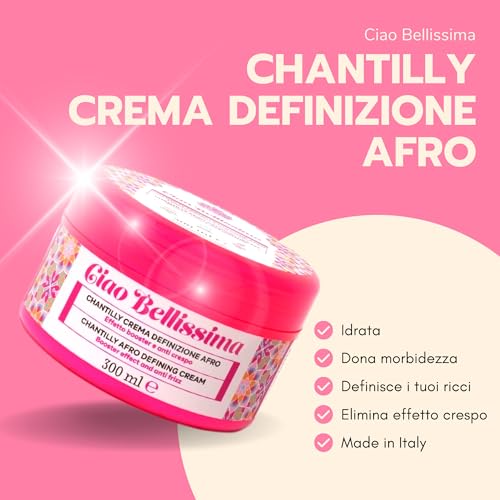 AfroRicci Ciao Bellissima By AfroRicci Chantilly Crema Definizione per Capelli Ricci e Afro con Burro di Karite' e Olio di Mandorle 100ml - Travel Size, Made in Italy