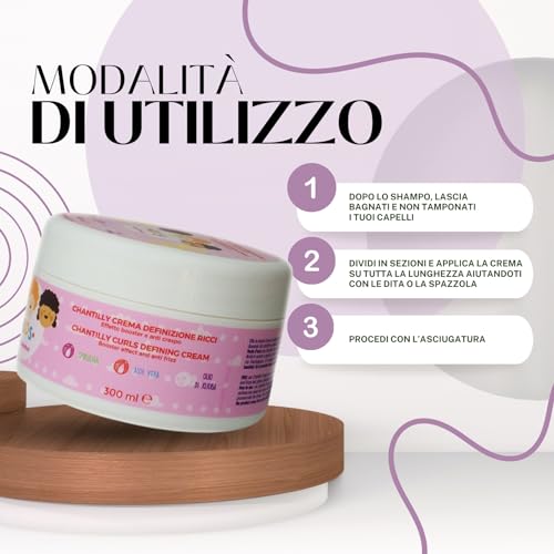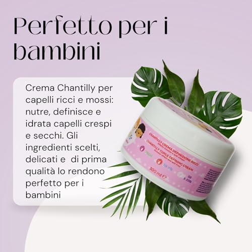 AfroRicci Kids Chantilly Crema Definizione Ricci 300 Ml, Idrata, la Nostra Crema Chantilly per Capelli Ricci e Mossi, Nutre, Definisce e Idrata Capelli Crespi e Secchi, Made in Italy