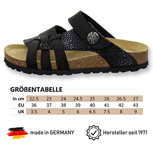 AFS-Schuhe 2120 Ciabatte da donna in pelle con chiusura in velcro, comode pantofole da donna con plantare, Made in Germany, marmo nero., 40 EU