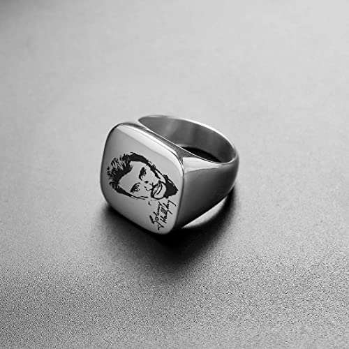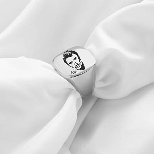 AFSTALR Johnny Hallyday - Anello da uomo in acciaio inossidabile, anello sigillo con firma Johnny Le Boss Rock