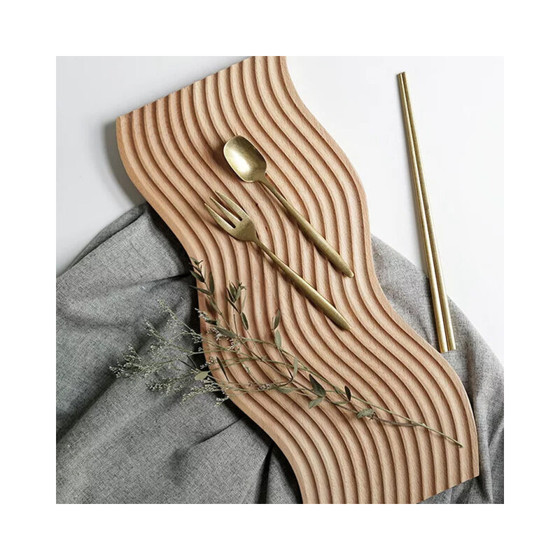 Afternoon Tea Tray Plate Vegetables Fruit Board Storage Organizer Wooden Tray Water Ripple Chopping Block Household Breadboard,wave 39x18.5x2cm