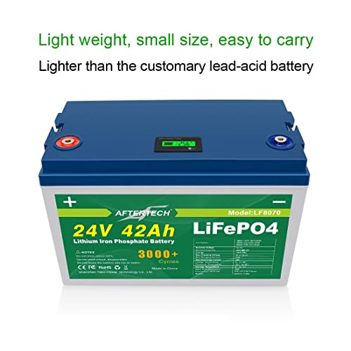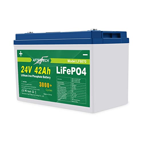 AFTERTECH 24v 42Ah LIFEPO4 PACCO BATTERIA RICARICABILE LITIO FERRO FOSFATO PILA 3000+ CICLI PROFONDI 25,6v 1075wh