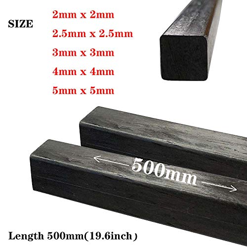 ✔ Dimensioni specifiche: 2 mm x 2 mm, 2,5 mm x 2,5 mm, 3 mm x 3 mm, 4 mm x 4 mm, 5 mm x 5 mm. Lunghezza: 500 mm. Include: 2 pezzi di solida asta quadrata in fibra di carbonio.