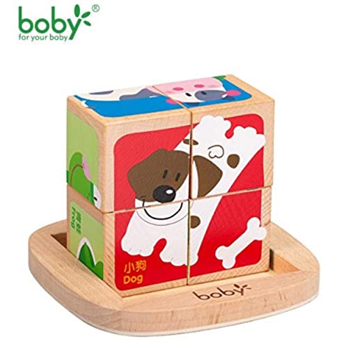 Puzzle Bambini - Il puzzle colorato è composto da 4 cubi che possono essere assemblati in 6 diverse immagini di animali( Ogni blocco misura circa 4.8x4.8x4.8cm). È un puzzle a sei facce, I sei lati dei blocchi hanno schemi diversi. Solo quando vengono messi insieme possono diventare un'immagine.