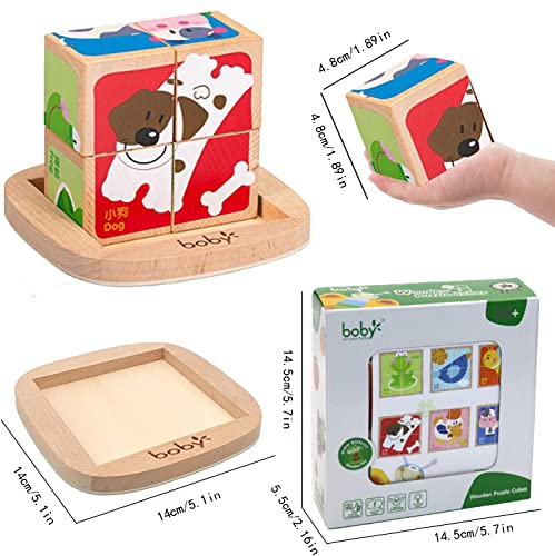 Afufu Blocco Puzzle di Legno, Montessori Giocattoli Gioco Bebe, Giochi Bambini Prescolare Giocattolo Educativo Cubo di Animali Puzzle, Regalo di Natale di Compleanno per Ragazzo Ragazza 1 2 3 4 Anni
