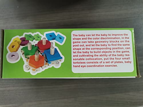 Educational Geometric Stacker Toddler Toy: questo giocattolo puzzle geometrico di legno prescolare di 1, 2, 3, 4, 5 anni è composto da 4 simpatiche tartarughe di fondo e 12 blocchi geometrici mobili con una varietà di colori e forme, permette ai suoi bambini di creare più modi di giocare. i bambini i 1 2 3 anni dovrebbero usare sotto la supervisione di adulti.
