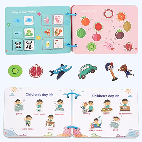 Giocattoli Educativi per Bambini: Scene colorate e graziosi disegni di carte, stimolare l'interesse dei bambini. I bambini possono facilmente staccare il motivo sul cartone, quindi utilizzare dei punti di colla per incollare la posizione del motivo corrispondente sul libro, possono stimolare l'interesse dei bambini per l'apprendimento.