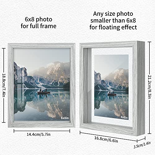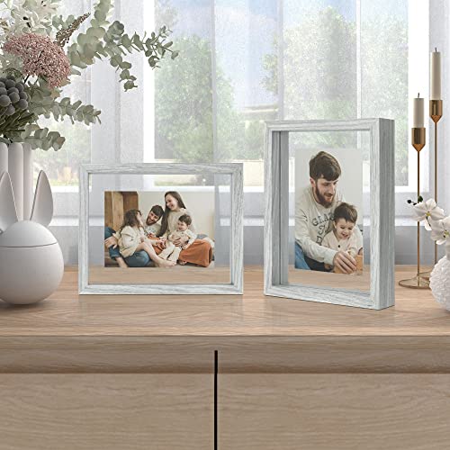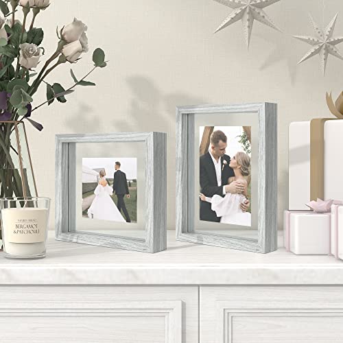 Afuly Cornice Foto 10X15 Floating Fino a 15X20 Grigio Legno Doppio Glass Moderno Regalo Desktop o Parete, Set di 2