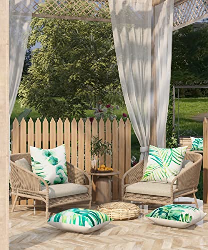 Afuly Federe Cuscini Divano 45x45 Giallo Blu Verde Pianta Pattern Bianco Federa All'aperto Camera da letto Salotto Decor, Set di 4