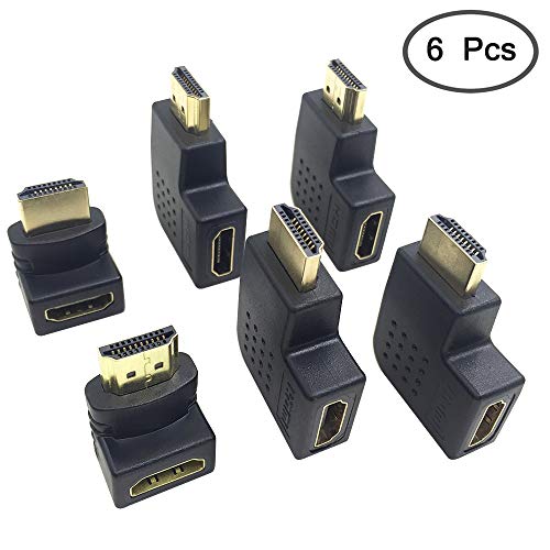6 adattatori HDMI: 2 x adattatore HDMI piatto sinistro a 90 gradi, 2 x adattatore HDMI a 90 gradi, 1 x adattatore HDMI maschio a femmina a 270 gradi, 1 adattatore HDMI maschio a femmina, 1 x adattatore HDMI da 90 gradi maschio a femmina.