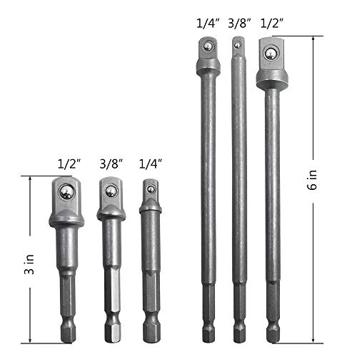 AFUNTA - Set di 6 adattatori per trapano con attacco esagonale, 1/4", 3/8" e 1/2" Driver Power Drill Impact Driver - Adattatore da 3" e 6"