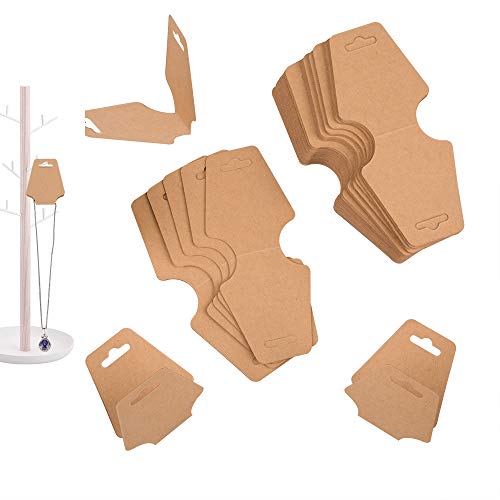 AFUNTA - Cartoncini espositivi per collane e orecchini, 100 pezzi per ciascuna tipologia, in carta kraft, per confezionare e appendere collane, orecchini, gioielli vari, colore: marrone