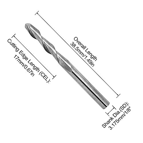 Diametro del gambo (SD) 3,175 mm (1/8") circa, diametro del bordo di taglio (CED): 3 mm.