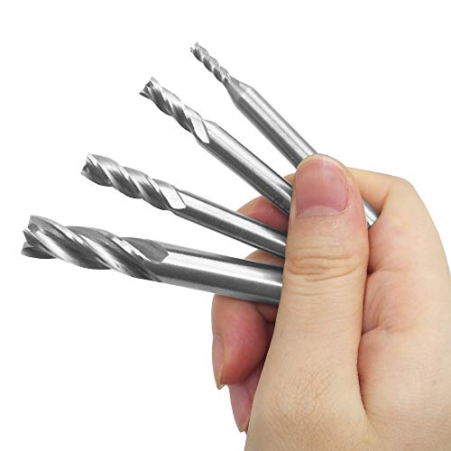 Afunta - Set di 8 punte per fresa a 4 taglienti, 1/2 "1/4" 1/8" 3/8" 3/16" 5/16" HSS CNC gambo dritto per legno, alluminio, acciaio, titanio