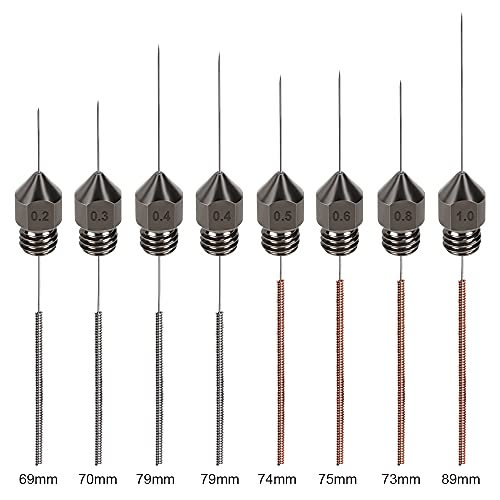 AFUNTA MK8 - Ugelli per stampante 3D, in acciaio temprato (0,2/0,3/0,4/0,5/0,6/0,8/1,0 mm) con 8 aghi per la pulizia, compatibili con Makerbot, Creality CR-10 All Metal Hotend, Ender 3 5