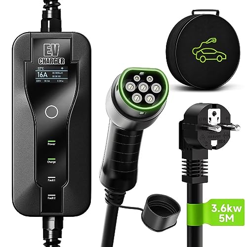 AFYEEV 3.6kw Ricarica Auto Elettrica Portatile, Cavo Ricarica Auto Elettrica Tipo 2, 8/10/13/16A Corrente Regolabile, Cavo Ricarica Auto Elettrica, 5M con Borsa (IEC 62196-2)