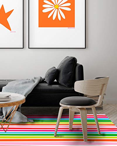 Agatha Ruiz de la Prada Tappeto Vinile Stampato Basico Strisce Colorate 80x150cm - Tappeto da Cucina Piastrelle Antiscivolo - Tappeto Moderno Salotto - Tappeto Lavabile Ignifugo