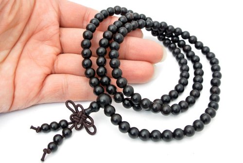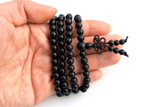Rosario buddista in ebano, unisex, perline di 6 mm.