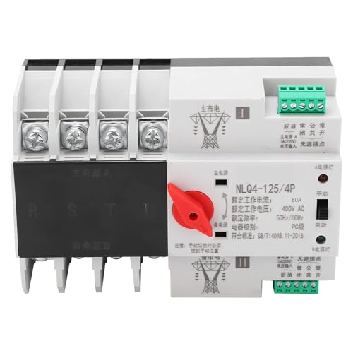 Agatige Interruttore di trasferimento Automatico da 400 V, Controllo dell'alimentazione su Guida DIN a 4 Poli trifase a 4 Fili(80A)