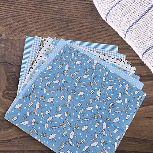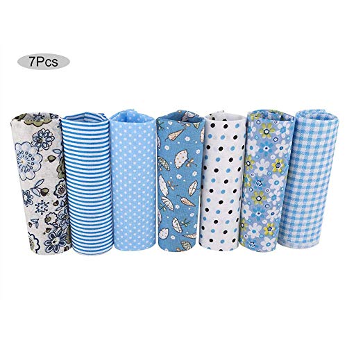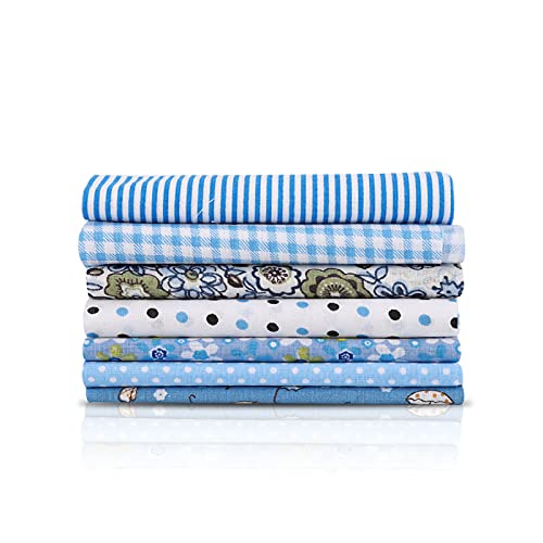 Agatige 7 Pezzi di Tessuto di Cotone, Patchwork di Fiori Blu per Cucire Quilt e Artigianato Fai-da-Te(50x50cm)