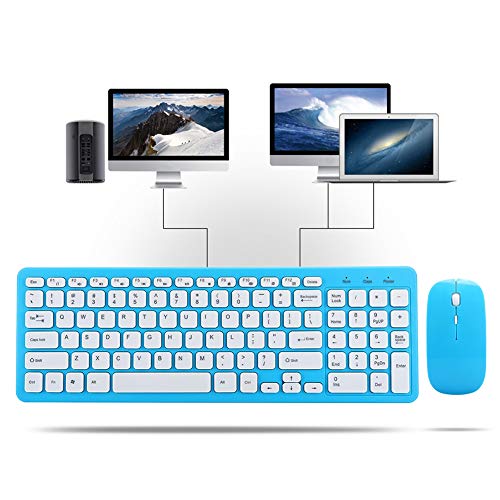Agatige Set tastiera wireless per mouse, giochi da ufficio per computer notebook con micro ricevitore a 3 velocità(Tuta blu senza fili)