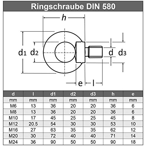 Si prega di prestare attenzione ai dati tecnici (vedi immagini). Le viti con occhiello raffigurate servono come esempio e possono variare dalle dimensioni reali.