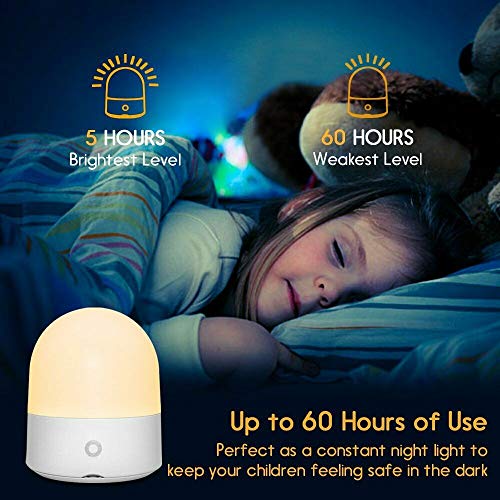 Agedate, luce notturna per bambini, smart touch, lampada da comodino con stazione di ricarica USB, luce notturna a LED RGB, 3000 K, regolabile, luce bianca calda per cameretta dei bambini, camera da letto, campeggio, picnic