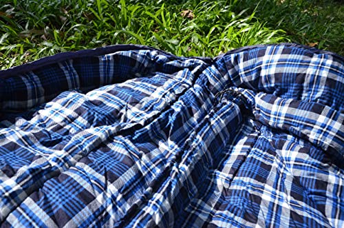 Gamma di temperatura e peso: 2,2 kg di imbottitura in flanella blu per adulti sono confortevoli a -5 ° C/-6,7 ° F e si adattano alla gamma di temperature -6,7 - 5 ° C. Si consiglia alle femmine di scegliere i sacchi a pelo più spessi.