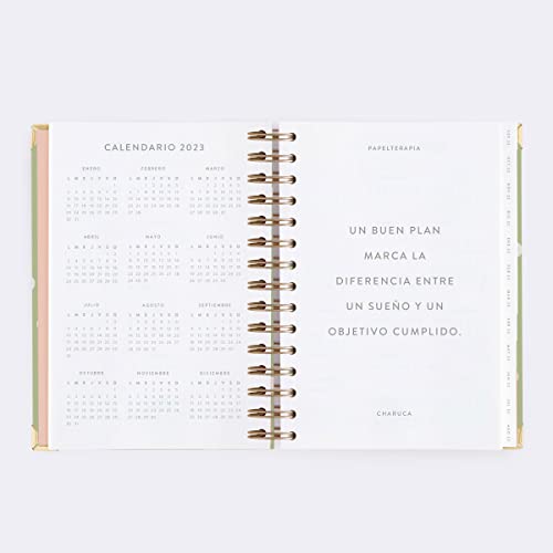 Finalmente è tornato il nostro best seller, l'agenda Charuca, per pianificare il tuo anno e realizzare i tuoi sogni. L'agenda Charuca diventerà la tua migliore amica e il tuo allenatore perché ti aiuta a organizzarti, concentrarti, rimanere motivata e pianificare per lavorare con i tuoi obiettivi con attenzione e costanza. La versione dell'anno accademico inizia a settembre 2022e termina nell'agosto 2023. Insieme alla tua agenda riceverai un segnalibro /righello e la nuova edizione del libro di adesivi "My Life in Bachelor" con oltre 1.400 adesivi (sì, sì, hai letto bene 1.400!) suddivisi per categorie e colori, per organizzarti al massimo e avere una vita gustosa ed equilibrata.