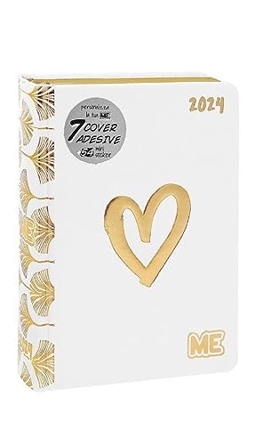 Agenda compatibile con DIARIO SCUOLA Me Evolution Edizione Speciale Cuore Oro bianco 2023-2024 datato + omaggio portachiave paillettes e penna colorata