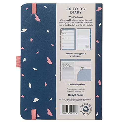Busy B - Agenda To Do da gennaio a dicembre 2022 - Diario settimanale A6 blu, con note, liste a strappo e tasche Inglese