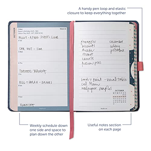 Organizza perfettamente il tuo 2022 con questo diario bestseller Busy B, con una copertina morbida ornata con dettagli in lamina d'oro, banda di chiusura elastica, passante per penna (penna non inclusa) e nastro segnalibro.