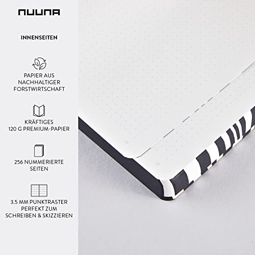 Qualità: con una copertura in pelle liscia, carta premium, rilegatura innovativa, produzione sostenibile, finitura unica e design piatto, il tuo diario Nuuna ti porterà ad un'esperienza di scrittura di alta qualità