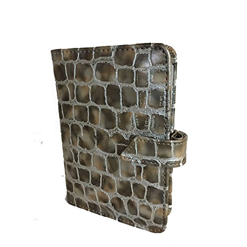 Agenda organizer Going molto elegante e professionale, agenda in ecopelle argento e beige, apertura con bottone, interno: 7,7 x 12 cm, interno a 6 anelli, interno: vani porta card e tessere