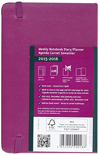 Notebook tascabile da Moleskine settimanale 18 mesi, Copertina rigida con malva viola.