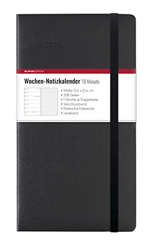 Agenda settimanale 18 mesi, 2018/2019, Copertina rigida, Nero 13x21 cm