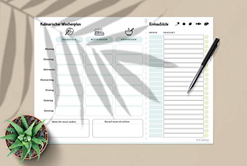 Pratica struttura: il pianificatore alimentare PICTALOO ti rende facile creare un piano di pasti ben visibile per tutta la famiglia e scrivere i prodotti necessari direttamente sulla lista della spesa.