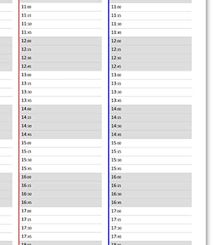 Le colonne sono divise in quarti d'ora che partono dalle 9:00 fino all 19:45, diverdificando lo sfondo di ogni ora tra bianco e grigio