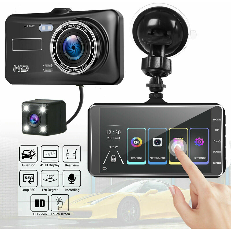 Ultimo aggiornamento Dash Cam a specchio da 4 pollici Streaming multimediale Full Touch Screen Dash Cam, fotocamera anteriore 1080P e fotocamera posteriore 1080P, visione notturna superba √ Cavo doppio 1080 Pamera Aggiorna sia la fotocamera posteriore 1080P che la fotocamera lunga cavo, il nostro esclusivo cavo per fotocamera posteriore, ti aiuta a risolvere il problema del cavo corto della fotocamera durante l'installazione. La fotocamera frontale 1080P e la fotocamera posteriore 1080P offrono un'eccellente qualità video. Non preoccuparti di non vedere chiaramente le altre targhe. La trasmissione di immagini in tempo reale, la visualizzazione a schermo intero, la dash cam a specchio con obiettivo grandangolare elimina i punti ciechi. √ UI premurosa e funzioni potenti UI premurosa e facile da usare. La luminosità può essere regolata scorrendo verso sinistra e verso destra sullo schermo. Premi il pulsante di accensione per spegnere lo schermo (la doppia fotocamera funziona ancora per