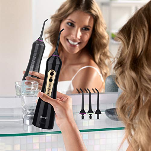 Aggiornamento tecnico - Idropulsore Dentale Professionale con 6 Beccucci, Vinmori Portatile Irrigatore Orale Elettrico con 3 Impostazioni per la Pressione dell'Acqua, Cura Dentale,Approvato dalla FDA