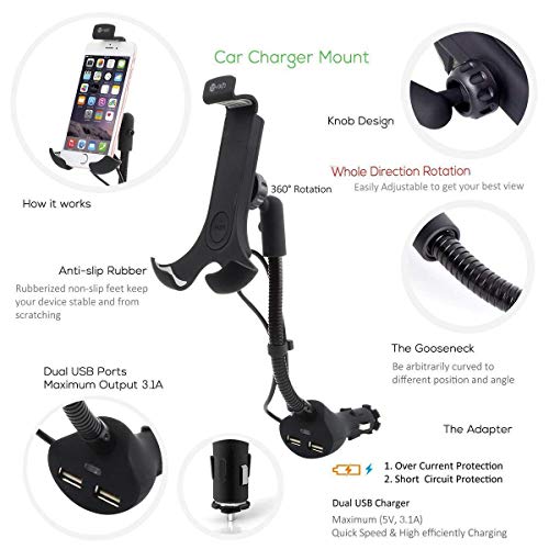 Te-Rich-Altoparlanti aggiornato 2-in-1 Caricatore accendisigari Auto Phone Holder Mount