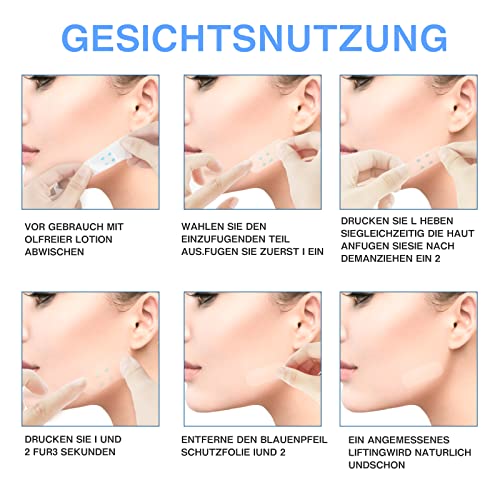 Design invisibile: traspirante e confortevole, viso e collo possono essere sollevati immediatamente con il sollevatore viso e collo. È completamente invisibile, dopo l'installazione non è visibile alcun nastro adesivo. Crea un viso a forma di V.