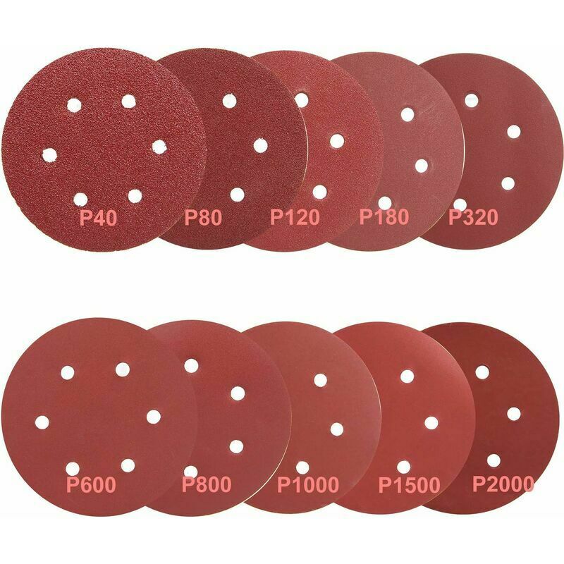 Lucidatura e rimozione della ruggine - : utilizzato con utensili elettrici, utensili pneumatici, smerigliatrici Ideale per la lavorazione del legno, rimozione della ruggine, lucidatura di metalli, plastica, pelle, gomma in pelle e vetro. 【Modelli standard e molti tipi】: la carta vetrata con un diametro di 150 mm aderisce saldamente al disco adesivo, nessuna situazione non copre abbastanza.Grano 40/80/120/180/320/600/800/1000/1500/2000, 10 pezzi di ogni modello in gruppi per soddisfare le diverse esigenze. 【Design a 6 fori】: il disco di sabbia con fori facilita la rimozione dei trucioli dai fori durante la molatura di oggetti, risparmiando tempo e migliorando la velocità di molatura. 【Attacca il retro durevole】: il retro della carta vetrata è realizzato in pile spesso con forte adesione. I ganci durevoli non si separeranno facilmente dalle levigatrici orbitali casuali durante l'uso. Veloce da installare. Descrizione del prodotto Colore: 150 * 150 mm Scegli una buona carta vetrata