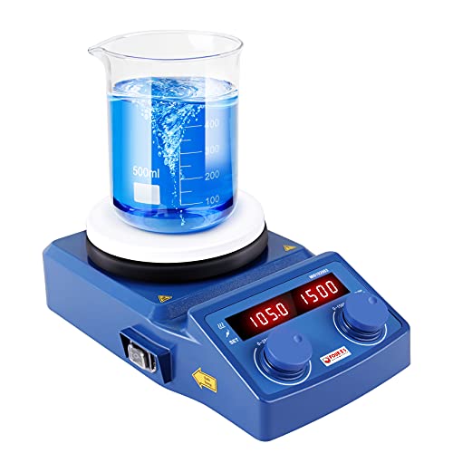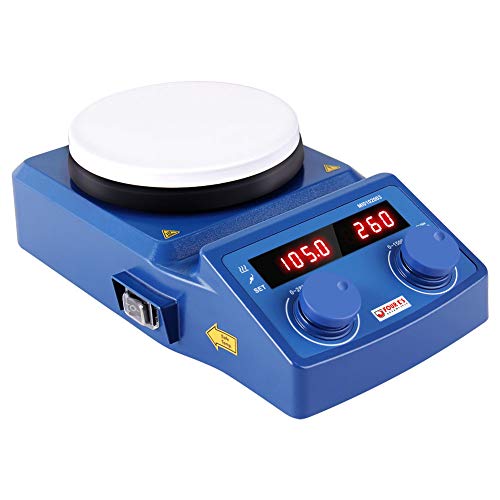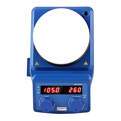 Riscaldamento potente: La quantità massima di agitazione può raggiungere fino a 5L(max 3L a 1500rpm), il design della piastra di riscaldamento chiusa consente il trasferimento immediato di calore, resistenza alla corrosione, durata e raffreddamento rapido, Max. Temperatura della piastra di riscaldamento 280°C