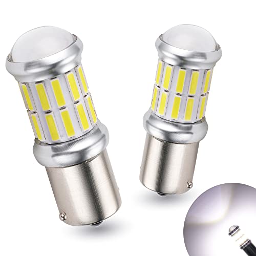 【Super Bright】: Lampadina LED P21W da 2 pezzi, ogni lampadina ha 27 chipset 7020 super luminosi con un angolo di illuminazione di circa 360° senza punto cieco. Circa 3 volte più luminoso della lampadina alogena.