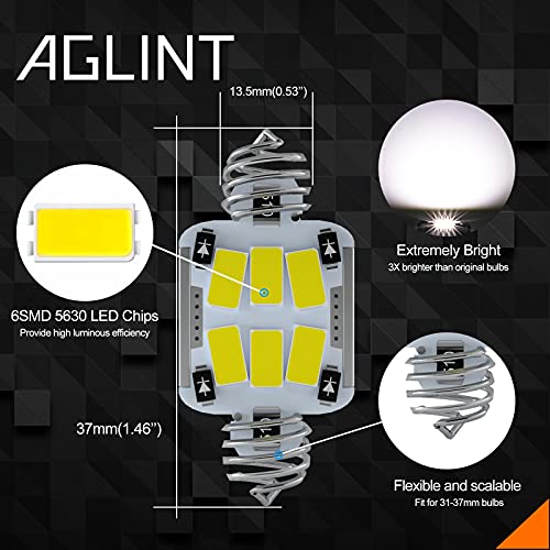AGLINT C5W 31mm 36mm LED Lampadine CANBUS 6418 6411 Festone Luci Interne Porta Soffitto Cupola Mappa Targa Lampadina Bianca 2Pcs (31mm-36mm)