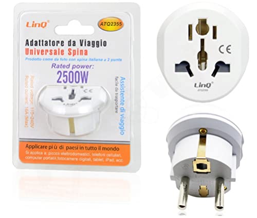 Aglow.it Adattatore da Viaggio 2500w universale ATQ2355, Convertitore per Spina Universale Tutto in uno, Alimentazione Internazionali oltre 150 i Paesi per USA UK EU