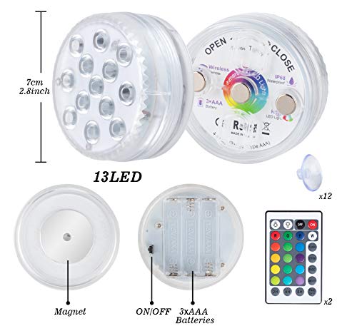 Telecomando Infrarossi: il telecomando in dotazione consente di accendere e spegnere i LED sommergibili a distanza. Il pacchetto include 2 luci sommergibili e un telecomando funzionerà per tutte le luci.