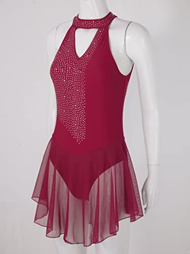 Agoky Abito da Pattinaggio Artistico sul Ghiaccio Donna Body da Balletto Senza Maniche Body da Ginnastica Artistica Abito da Ballo Jazz Danza Moderna Allenamento Borgogna C M