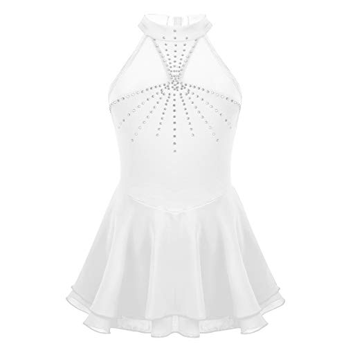 Agoky Ragazza Abito Pattinaggio Artistico Ginnastica con Strass Body da Danza Balletto Senza Maniche Tuta in Tulle Leotard Bodysuit Dancewear 7-13 Anni Avorio 11-12 Anni